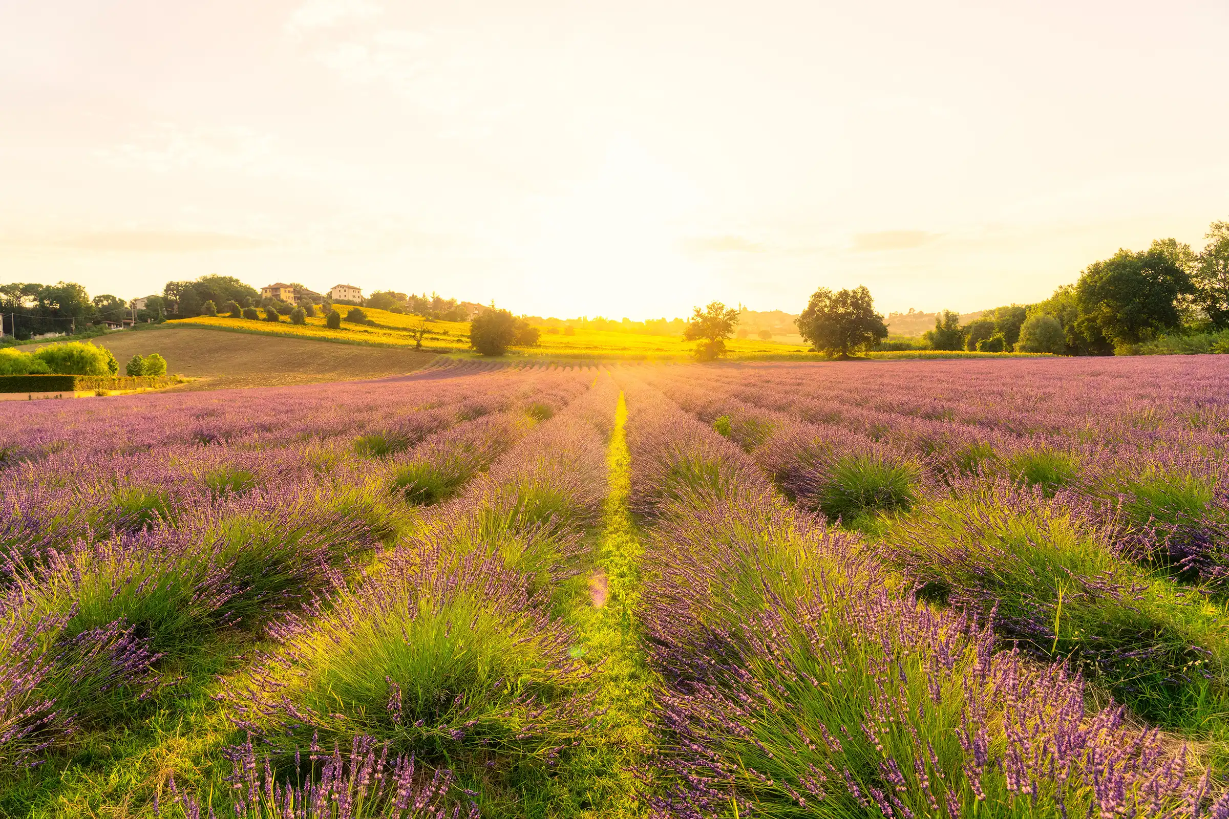 Utsikten denne kvelden er uforglemmelig – vi ser utover det vakre, bølgende landskapet, med Adriaterhavet som en blå stripe i horisonten.