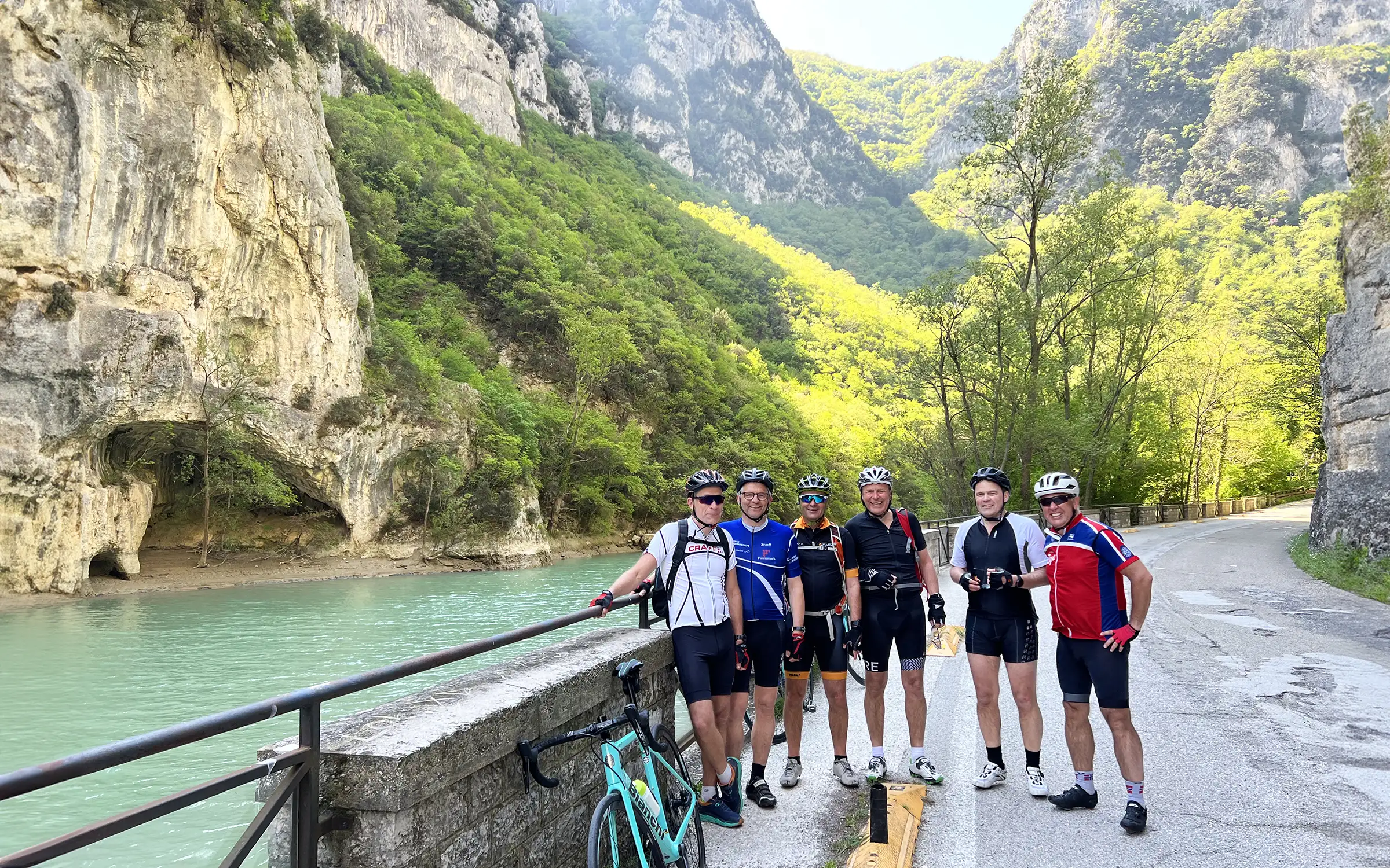 Ved ankomst til hotellet i Verucchio (regionen Emilia-Romagna) sjekker vi inn, spiser litt lunsj, og deretter tilpasses og justeres syklene for en kort testtur i området – der sykkellegenden Marco Pantani hadde sin treningsbakgård.