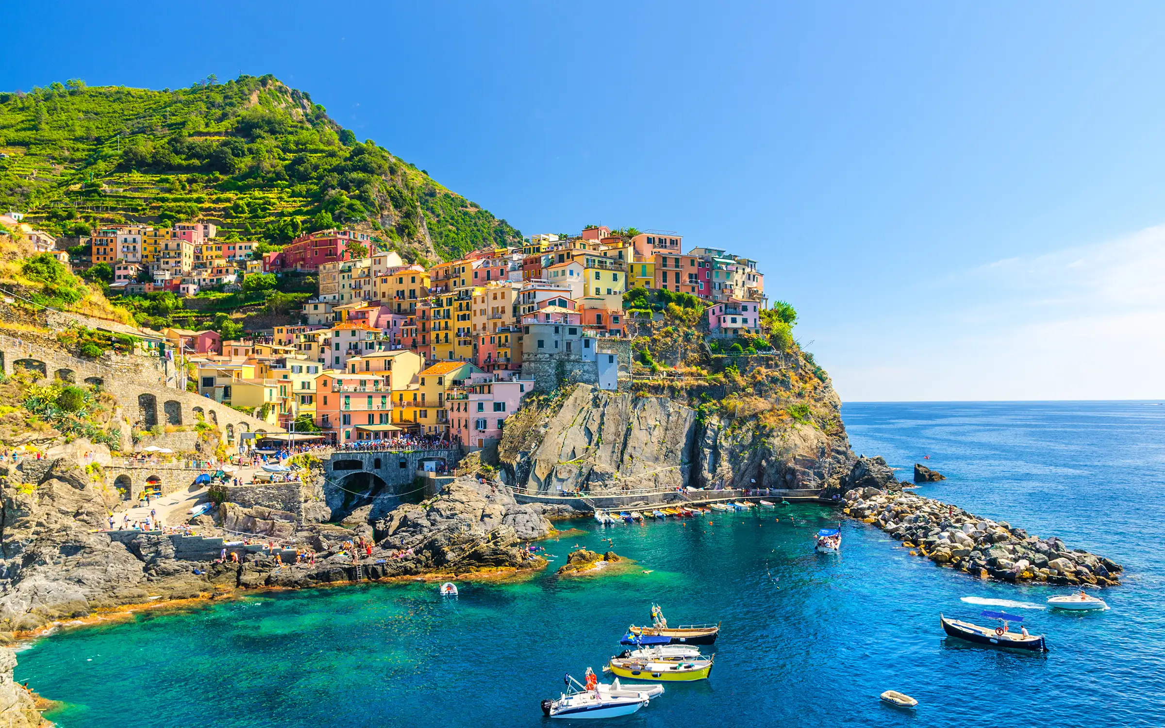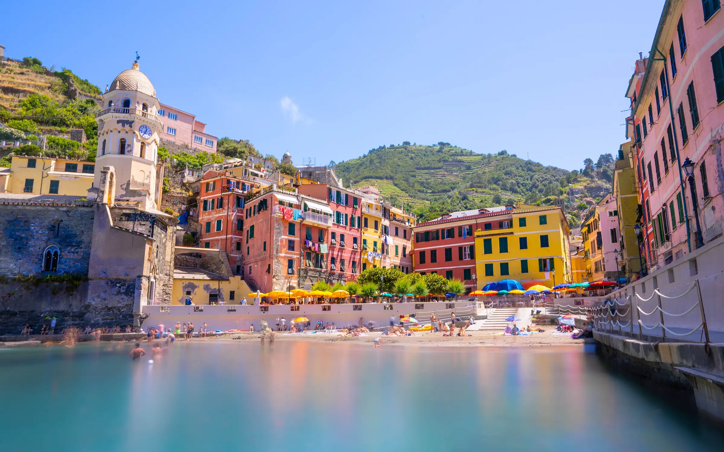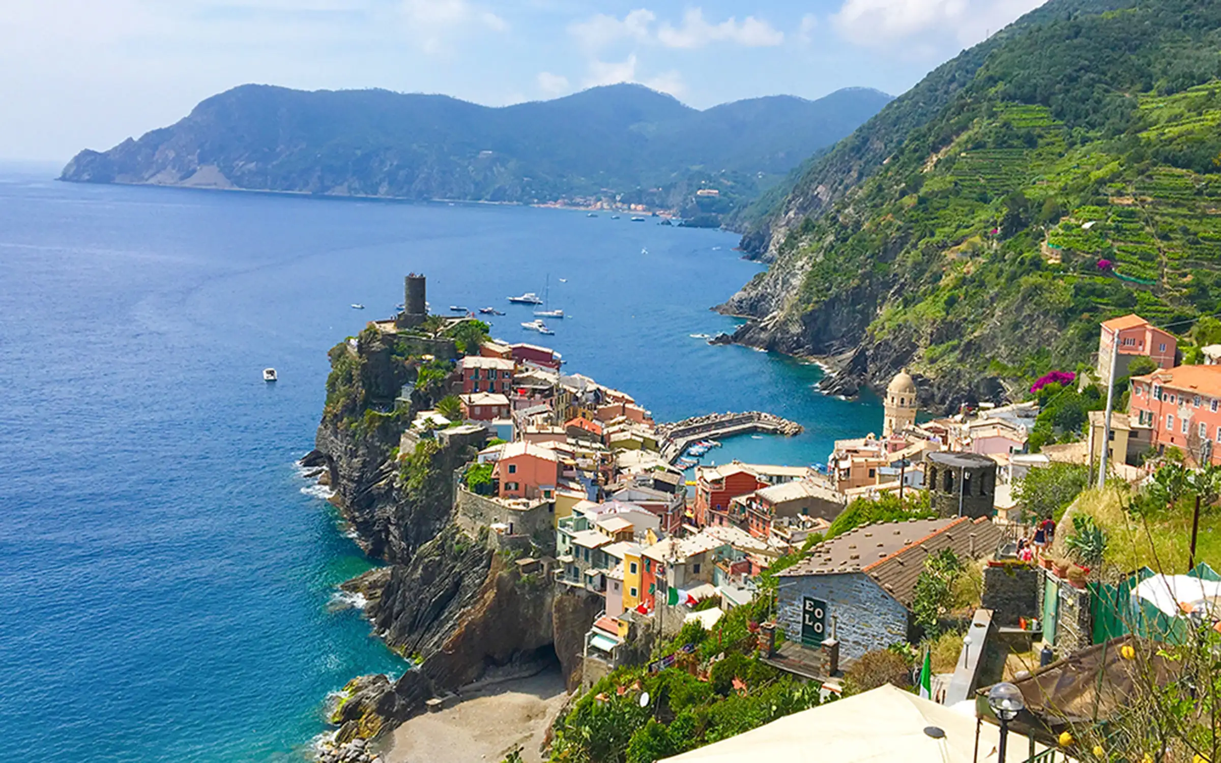 Det er vanskelig å velge seg én favoritt av disse 5 vakre bilfrie ‘Kardemomme-byene’ som klamrer seg til fjellsidene i dette vakre området: Monterosso – Vernazza – Corniglia – Manarola – Riomaggiore.