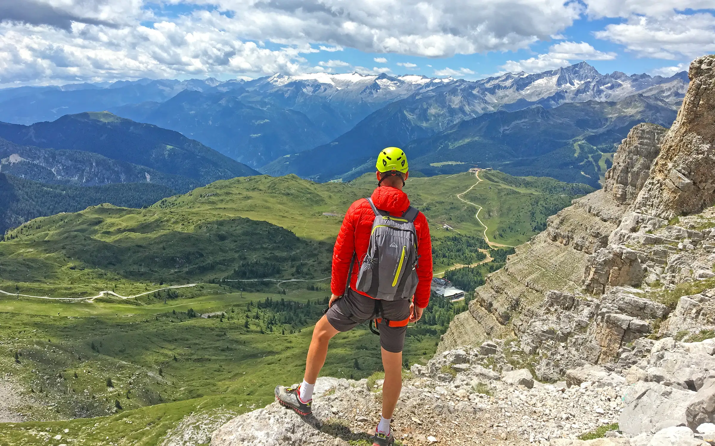 Viktig med en mindre ryggsekk som rymmer det du trenger for fotturene i Brenta Dolomittene. Sekken kan du jo også ha håndbagasjen på flyet.