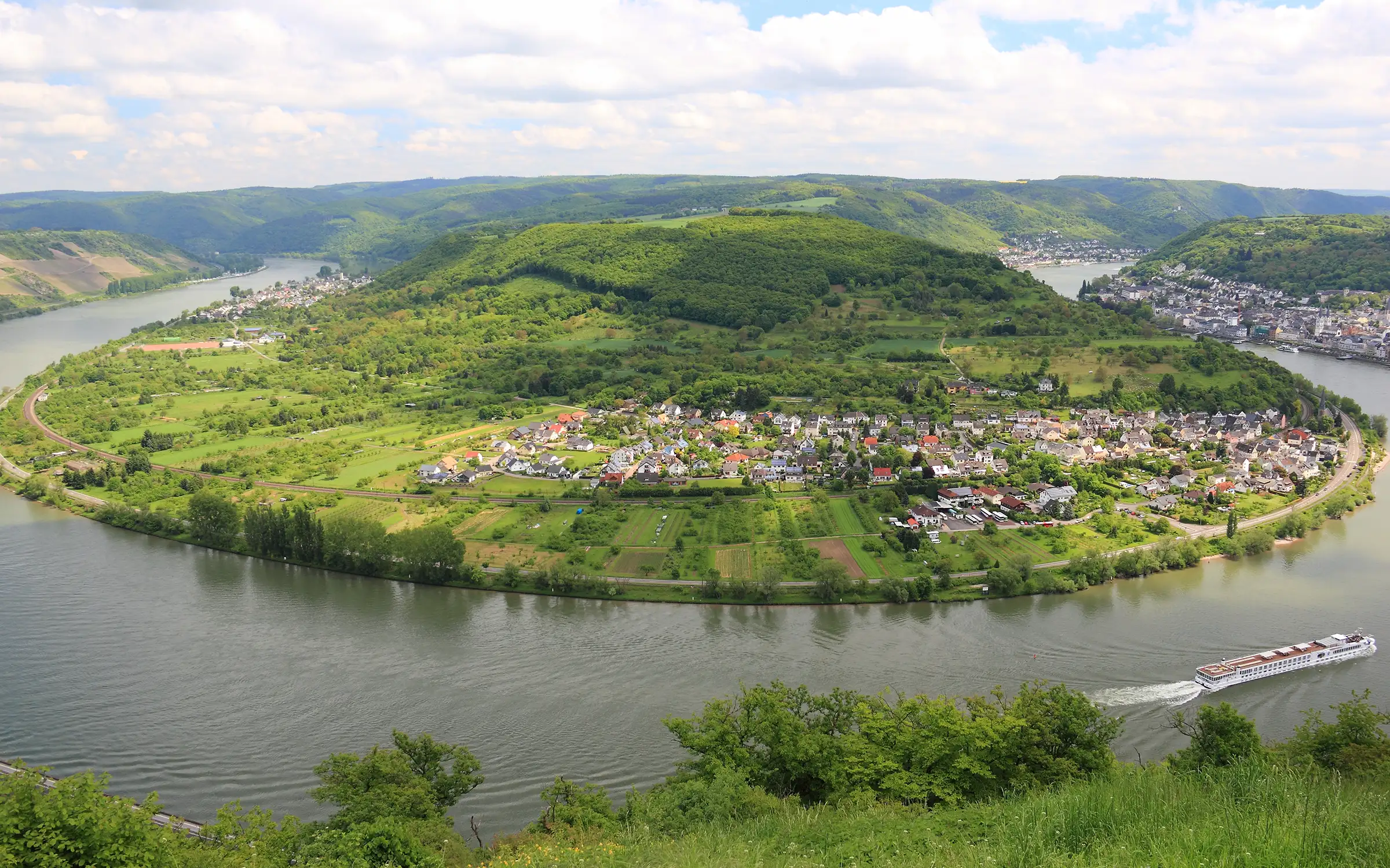 Du sykler videre til Boppard, der anbefaler vi en stolheistur til utsiktspunktet “Vierseenblick”, som gir en enestående utsikt over Rhinen (ikke inkludert).