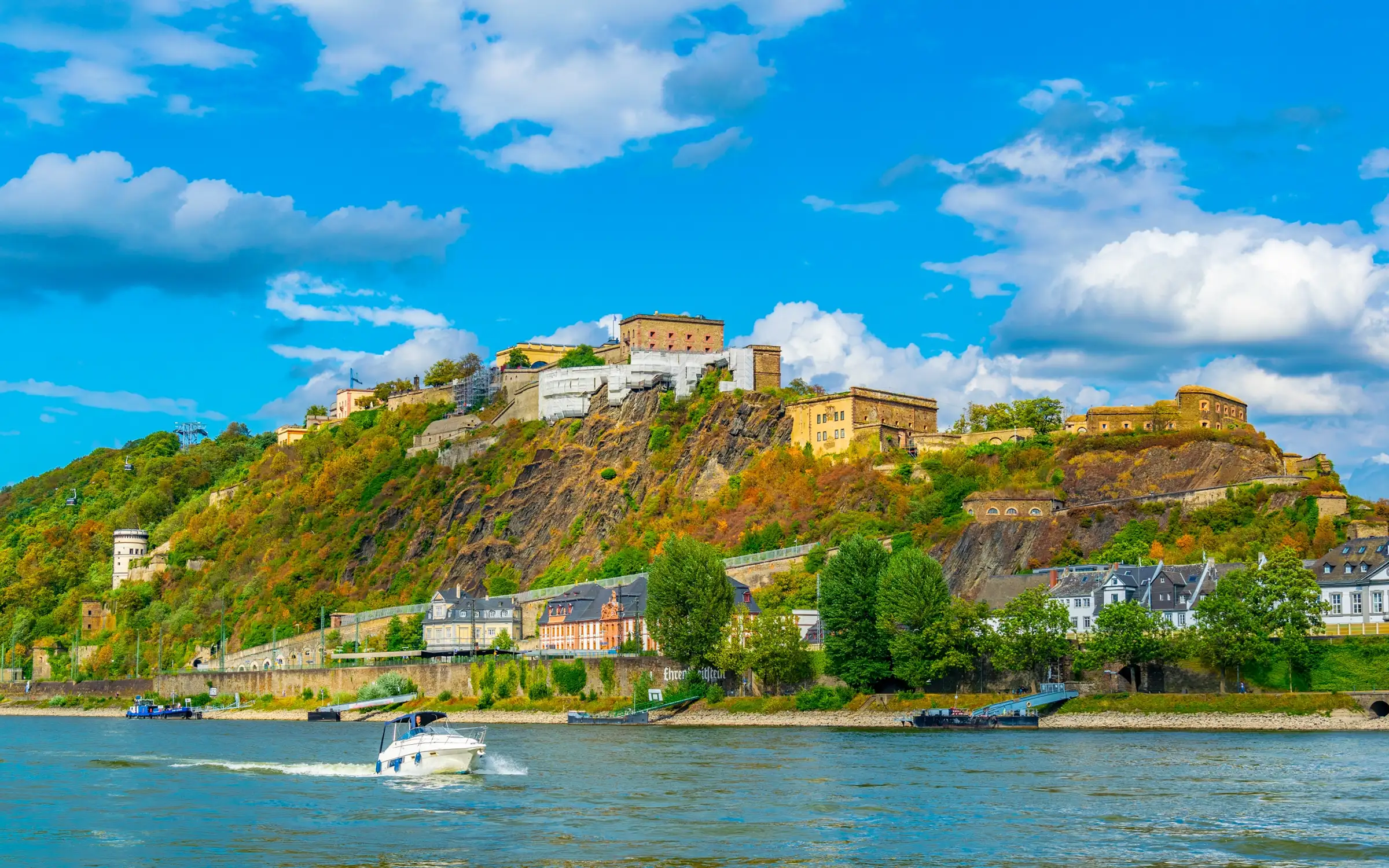 Etterhvert når du dagens mål: Koblenz. Der Ehrenbreitstein-festningen hersker over byen. En taubane kobler Gamlebyen til festningen. Vi anbefaler turen, samt at du ser mer på ‘Deutsches Eck’ (Det tyske hjørnet), en berømt landtunge i Koblenz, beliggende der elven Mosel munner ut i Rhinen. Dette landemerket er kjent for den 37 meter høye rytterstatuen av keiser Wilhelm I, og fungerer som et symbol på tysk enhet. Området er en del av UNESCOs verdensarvliste og et populært turistmål.